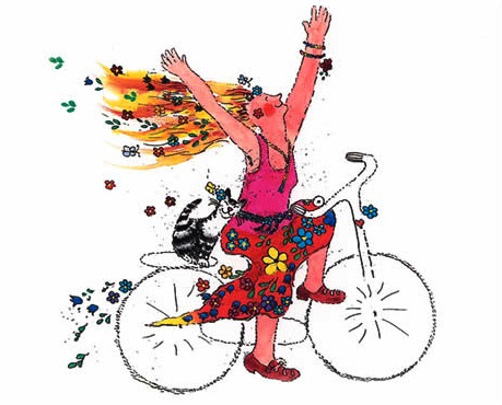 Länge sparade jag affischer – Bröd och Rosors egna och 8e-mars-affischer. Men nu hittar jag dem inte. Barbro Andréen gjorde många av kvinnorörelsens bilder. Fantastiska. Hon har gjort den glada cykeltjejen.