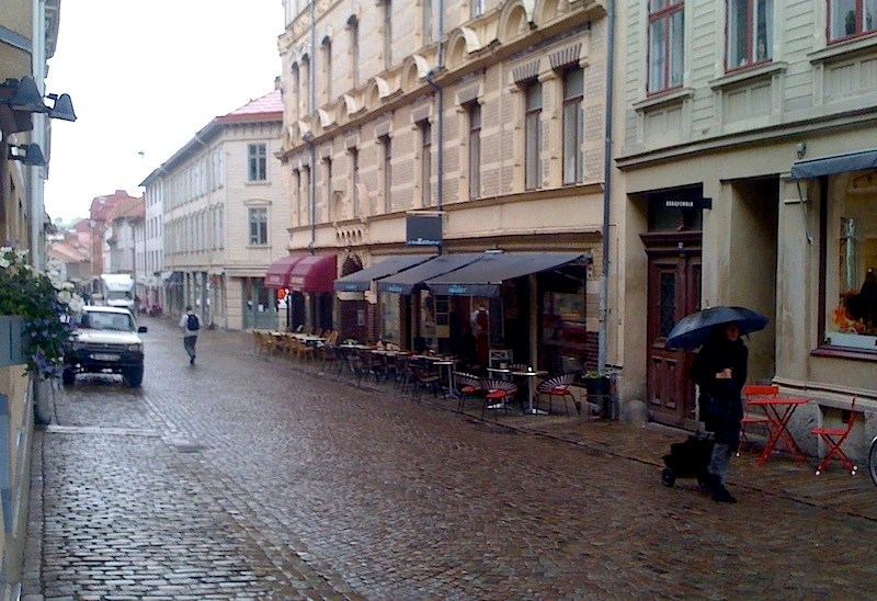 Att komma till Göteborg är för mig att komma hem. Det var viktiga år i livet, 60 – 70-talet, då jag bodde där. Att flanera längs Haga Nygata en regning försommardag känns ljuvt vemodigt . Gamla Haga går att känna igen trots att det har blivit en av Göteborgs finare stadsdelar. Då stod striden om varje hus som hotades av rivning, stadsdelen sjöd av liv. Det fanns allaktivitetshus, många av de nya politiska rörelserna hade sin hemvist här – vänsterns alla schatteringar, kvinnorörelsen, miljörörelsen. De flesta hus finns kvar, en och annan butik och restaurang går att känna igen. Välkommen till Haga Nygata!