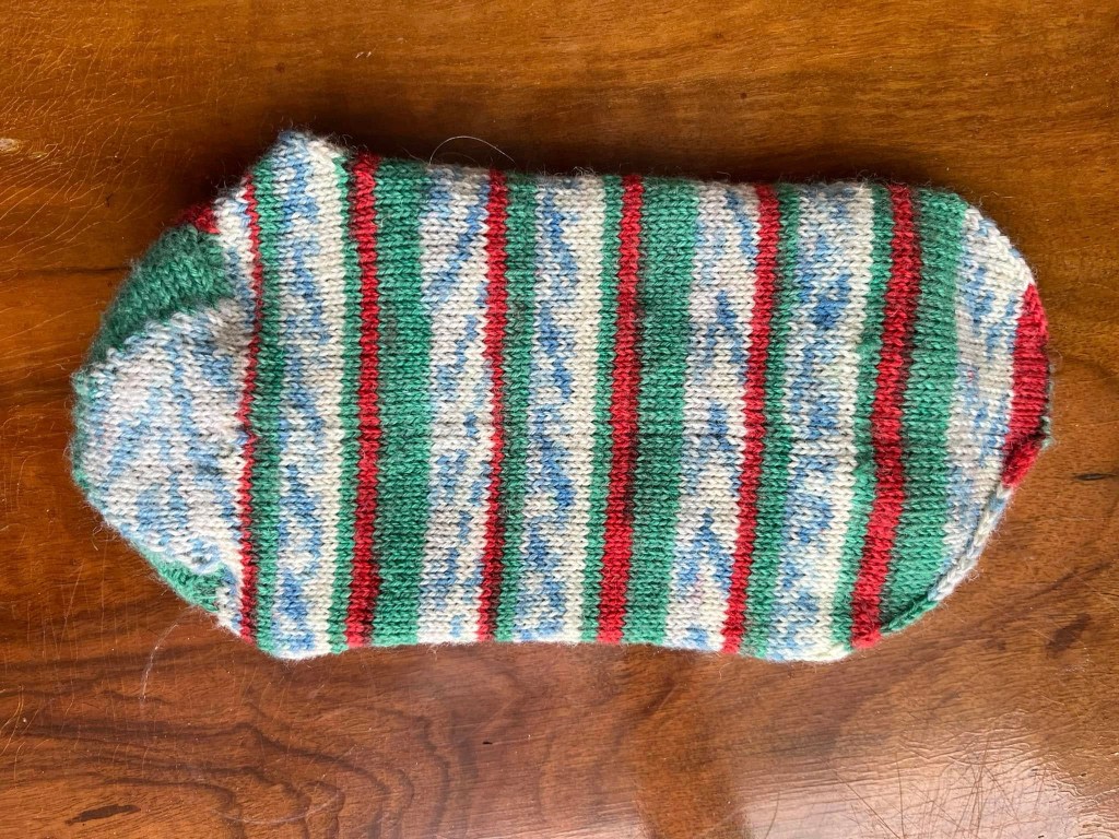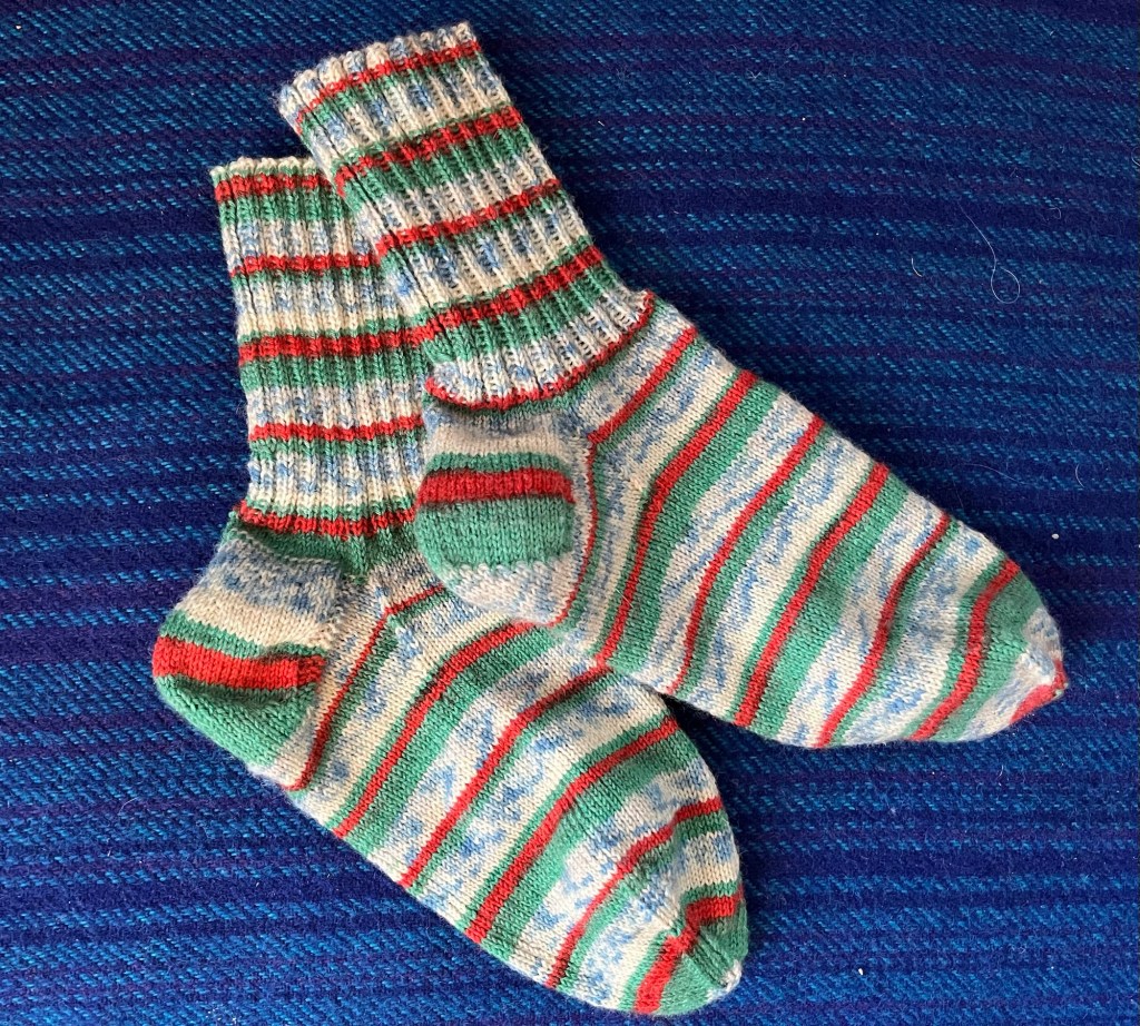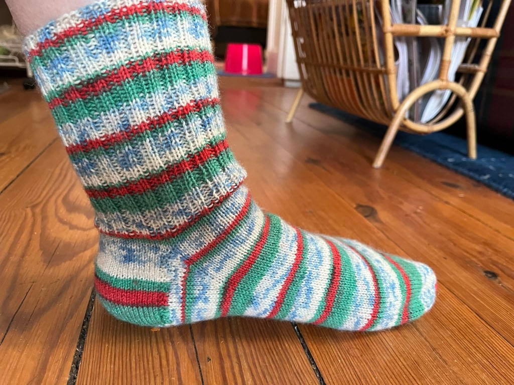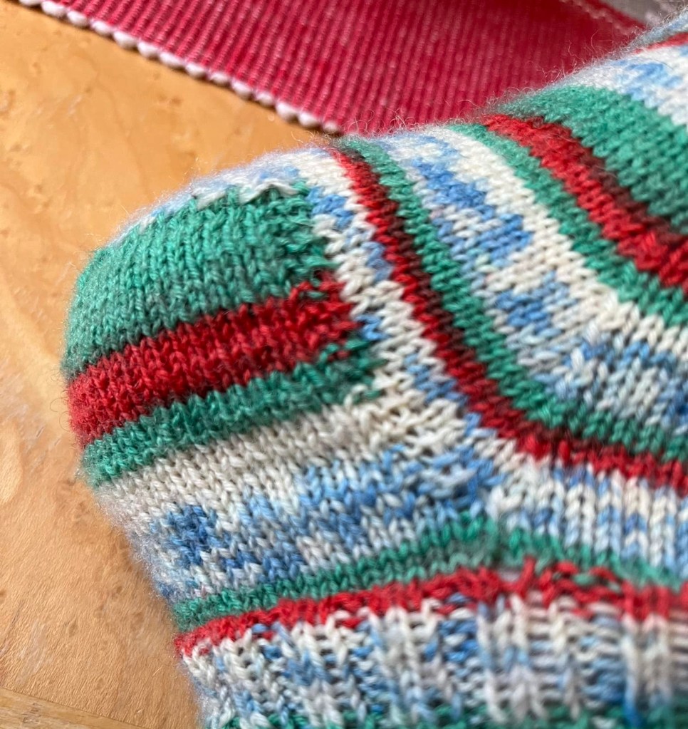 Det är bra med litet syntetgarn, annars går det hål på hälarna med en gång.